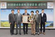 [비건뉴스=최지영 수습기자] 공주시는 지난 24일 시청 집현실에서 6·25전쟁에 참전해 용감하게 헌신하고 공을 세운 고(故) 이재설 중사의 유가족에게 무공훈장과 훈장증을 전달했다고 밝혔다. 고(故) 이재설 중사는 6·25전쟁 당시 제6보병사단 소속으로 주요 전선에서 혁혁한 전공을 세워 1950년 화랑무공훈장 수여가 결정됐으나, 전쟁기의 혼란으로 실물 훈장이 전달되지 못한 채 75년 동안 미전수 상태로 남아 있었다. 전쟁 이후에도 군 복무를 이어간 고인은 소령으로 제대했으며, 이번 전수는 육군본부가 추진 중인 ‘6·25전쟁 무공훈장 주인공 찾기 캠페인’을 통해 유가족을 확인하면서 이뤄졌다. 이날 전수식에는 유족 대표인 자녀 이제남 씨를 비롯해 자녀와 외손자가 참석했으며, 이제남 씨가 훈장과 훈장증을 전달받았다. 이제남 씨는 “오랜 세월이 지나서야 아버지의 공적이 공식적으로 인정받게 되어 감회가 깊다”며 “훈장을 받는 순간 참전 당시의 희생과 헌신을 다시 떠올리게 됐다”고 말했다. 최원철 시장은 “국가를 위해 헌신한 참전용사의 숭고한 희생을 깊이 기린다”며 “앞으로도 보훈가족 예우와 지원을