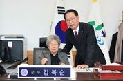 [비건뉴스=최지영 수습기자] 충북 괴산군은 18일 군수실에서 괴산두레학교가 운영 중인 ‘미디어 조각보’ 프로그램을 통해 어르신들과 함께하는 특별한 체험 활동을 진행했다. 이번 프로그램은 '내가 만일 다시 태어난다면?'이라는 주제로, 어르신들이 평소 마음속에 품어온 꿈을 실제로 경험해보는 체험형 평생학습 활동으로 마련됐다. 두레학교의 김복순 어르신(87세)은 “다시 태어난다면 군수가 되고 싶다”는 소망을 밝혔고, 군은 그 꿈을 응원하기 위해 어르신을 ‘일일 군수’로 특별 초청했다. 김복순씨는 송 군수와 함께 군수실을 둘러보고 간단한 군정 설명을 들으며 실제 공직자의 업무 환경을 체험했다. 김복순씨는 “배움의 기회를 다시 얻고, 이렇게 직접 경험까지 할 수 있어 큰 힘이 된다”며 감동의 소감을 전했다. 또 다른 체험자 양옥자 어르신(82세)은 “사단장이 되고 싶다”는 꿈을 밝혔으며 송 군수와 기념촬영과 티타임을 가지며 “평생 처음 가져보는 경험”이라며 기쁨을 전했다. 송 군수는 “오늘의 작은 체험이 어르신들께 새로운 자신감과 즐거운 기억이 되길 바란다”며 “어르신들이 활기찬 삶