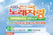 [비건뉴스=최지영 수습기자] 가을이 내려앉은 전주덕진공원에서 대한민국 국민 프로그램인 ‘KBS 전국노래자랑’이 펼쳐진다. 전주시는 오는 14일 오후 2시, 덕진공원 특설무대에서 시민과 함께하는 전국민적 노래 경연 프로그램인 ‘KBS 전국노래자랑 전주시편’이 진행된다고 10일 밝혔다. 이번 녹화에는 지난 9월 선착순으로 모집한 300팀의 예심 참가자들 중 치열한 경쟁을 거쳐 본선 진출에 성공한 참가자들이 무대에 올라 각자의 재능과 열정을 선보이게 된다. 특히 이번 전주시편 예심에는 접수가 시작된 지 이틀 만에 선착순 300팀이 마감될 정도로 전주시민들의 높은 관심과 참여 열기를 나타내기도 했다. 이날 본선 녹화 현장에는 2000여 명의 시민 관람객이 함께할 것으로 예상되며, 세대를 아우르는 흥과 끼가 어우러진 대규모 시민 축제의 장으로 꾸며질 예정이다. 시는 이번 행사가 시민 화합은 물론, 전주의 문화·관광적인 매력을 전국적으로 알리는 계기가 될 것으로 기대하고 있다. 전주시 관계자는 “전국노래자랑은 대한민국을 대표하는 국민 참여형 프로그램으로, 시민 누구나 주인공이 될 수