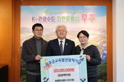 [비건뉴스=최지영 수습기자] 농업회사법인 (유)신화가 지난 19일 (재)무주군교육발전장학재단에 장학금 3백만 원을 기탁했다. 신화는 2022년부터 매년 장학금(3백만 원)을 기탁하며 지역인재 육성에 필요한 동력이 되고 있다. 팽주봉 대표는 “지역사회와 걸음을 함께 하는 법인으로서 미력하나마 인재 육성에 힘을 보태고 있다는데 큰 보람을 느낀다”라며 “앞으로도 무주군 학생들이 더 나은 환경에서 공부하고 꿈을 키우며 무주를 이끄는 인재로 성장할 수 있도록 지속적인 관심을 기울일 것”이라고 밝혔다. 한편, 농업회사법인 (유)신화는 무주군 설천면에 위치해 있으며, 무주군으로부터 위탁을 받아 목재펠릿 공장을 운영하고 있다. 이곳에서는 무주 지역의 산림부산물과 목재 자원을 활용해 친환경 목재펠릿을 생산·공급하며, 무주군 친환경 에너지 산업과 산림 순환 경제 구축에 기여하고 있다.