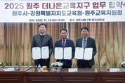 [비건뉴스=최지영 수습기자] 강원특별자치도교육청은 원주시, 원주교육지원청과 11월 18일 원주시청에서 ‘원주 더나은교육지구 연장지정 업무협약’을 체결했다. 이번 협약은 2018년 제1기 4년, 2022년 제2기 4년 운영에 이어 2026년부터 4년간 제3기 더나은교육지구 사업을 새롭게 추진하기 위해 마련됐다. 세 기관은 ‘배움과 성장, 문화예술로 동행하는 원주’라는 비전 아래 학교와 지역이 함께 성장하는 지속가능한 교육생태계 조성을 위해 매년 4억 원(교육청 2억 원, 군 2억 원)을 공동 지원한다. 원주 더나은교육지구는 학생의 전인적 성장을 지원하는 지역 중심 교육협력 사업으로, 학교·지자체·지역사회가 협력하는 ‘배움과 성장의 지역교육공동체’를 구축하고 있다. 지구중점 공동사업으로 △‘원주 한바퀴’ 원주 탐방 프로젝트 △‘원주 한바탕’ 원주 체험 프로젝트를 운영해 학생들이 지역의 역사·문화·자연을 탐방하며 원주 시민으로서의 정체성과 자긍심을 기를 수 있도록 돕는다. ‘예술 피움’ 사업은 △‘꿈키움’ 찾아가는 문화예술 소공연 △‘꿈그림’ 그림책·영상 창작 프로젝트 △‘꿈도약’ 리더십 스포츠 프로그