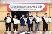 [비건뉴스=최지영 수습기자] 원주시는 2025년 개인택시운송사업 신규 면허 대상자 4명을 확정· 발표하고, 이달 27일 시청 7층 회의실에서 개인택시 운송사업 신규 면허증 수여식을 개최했다. 시는 지난 8월 18일 개인택시운송사업 신규 면허 모집 공고를 통해 13명을 접수하고, 10월 23일 확정 공고를 통해 4명을 신규 면허 대상자로 발표했다. 원강수 원주시장은 “20년이 넘는 오랜 기다림 끝에 신규 면허를 받게 된 모든 분께 존경과 축하의 말씀을 전한다”라며, “앞으로도 시민들에게 안전하고 친절