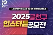 [비건뉴스=최지영 수습기자] 금천구는 11월 7일까지 ‘2025 금천구 인스타툰 공모전’을 진행한다고 밝혔다. 이번 공모전은 금천구의 주요 사업 및 행사, 금천구에 대한 매력을 보다 친근하고 재미있게 접할 수 있도록 창의적이고 확산력 있는 홍보 콘텐츠를 발굴하고자 기획됐다. 공모 주제는 금천구를 배경‧소재로 한 것이면 무엇이든 가능하다. 주제에 맞추어 누리소통망(SNS)을 통해 간편하게 보는 만화인 ‘인스타툰’ 형식(10~15컷 이내)의 작품을 접수하면 된다. 지역‧연령에 관계없이 금천구에 관심이 있는 개인 또는 팀 단위로 누구나 공모전에 참여할 수 있다. 다만 1인(팀)당 총 2작품까지 출품할 수 있다. 작품 접수는 인스타툰 공모전 누리집에 신청서와 작품을 함께 제출하면 된다. 작품 규격 및 참가 유의사항, 신청 서식 등은 인스타툰 공모전 누리집 또는 금천구청 누리집에서 확인할 수 있다. 예비 심사와 본 심사를 거쳐 선정된 8개 작품은 12월 3일 금천구청 누리집에서 공개된다. 심사는 △스토리텔링, 창의성 등의 작품성과 △홍보 콘텐츠로서의 활용성 △재미 요소, 트렌드 반영 등 대중성을