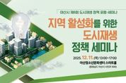 [비건뉴스=최지영 수습기자] 아산시는 한국도시재생학회(회장 이재우)와 공동 주관으로 오는 12월 11일 오후 1시부터 5시까지 아산시 청소년문화센터 스마트홀에서 ‘지역 활성화를 위한 도시재생 정책 세미나’를 개최한다고 밝혔다. 이번 세미나는 침체된 원도심을 활성화하기 위해 마련됐으며, 국토교통부 정우진 도시정책관의 ‘도시재생정책과 향후 과제’ 강연과 △재정 자율성 강화와 지속가능한 도시재생 △거점시설 활용한 주거지 정비와 원도심 활성화 전략을 주제로 한 기획세미나가 진행된다. ‘재정 자율성 강화와 지속가능한 도시재생’에서는 △사람공간E&C 최형선 대표의 ‘도시재생 지속 가능한 조직관리 및 지원센터의 역할’ △충북대 안상욱 교수의 ‘포괄보조 확대에 따른 지자체 재원확충과 활용’이 발표된다. 이어 ‘거점시설 활용한 주거지 정비와 원도심 활성화 전략’에서는 △LH토지주택연구원 김옥연 박사의 ‘저층주거지 활용과 원도심 성장거점화 전략’ △건축공간연구원 김영하 박사의 ‘도시재생으로 조성된 거점시설과 활성화 전략 및 청년 유입’ 등이 발표된다. 기획세미나 맞춤형 토론은 김호철 단국대 교수와 이재우 목원대 교수