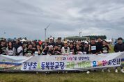[비건뉴스=최지영 수습기자] 제주도교육청 김녕초등학교는 26일 구좌생활체육공원 운동장에서 열린 ‘제17회 아름다운 제주 국제마라톤대회’에 김녕초 및 동복분교장 교육가족 50명이 함께 참가했다고 밝혔다. 김녕교육가족은 ‘건강과 나눔을 실천하는 유쾌한 도전’을 주제로 지난 9월부터 러닝 전문 강사와 함께 교직원 연수와 학생 수업을 병행하며 체계적으로 준비해 전원이 10km 코스에 도전했다. 이를 통해 학생과 교직원 모두 건강한 도전의 즐거움과 성취감을 느끼는 동시에 아름다운 김녕 해안도로를 달리며 고장에 대한 자부심과 공동체의 소중함을 되새기는 뜻깊은 시간을 가졌다. 양정인 교장은 “10km 달리기는 학생들에게 쉽지 않은 도전이었지만 끝까지 포기하지 않고 완주한 경험이 앞으로의 성장에 큰 밑거름이 되길 바란다”고 말했다.