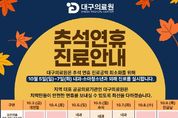 [비건뉴스=최지영 수습기자] 대구의료원이 추석 연휴 기간(10.3.~10.9.) 응급실 운영을 강화하고, 10월 5일(일)부터 7일(화)까지 내과·소아청소년과 외래 진료를 실시한다. 내과·소아청소년과 외래 진료 실시 대구의료원은 예년보다 긴 추석 연휴를 대비해 연휴가 절정을 맞이할 10월 5일부터 7일까지 3일간 지역의 진료 공백 해소를 위해 내과·소아청소년과 전문의 외래 진료를 시행한다. 또한, 인근 약국 3개소와 협력해 추석 연휴 기간 외래 진료 후에도 약을 처방받을 수 있도록 대비했다. 진료 시간은 평소와 같은 오전 8시 30분부터 오후 5시 30분까지이며 (점심시간 12:30~13:30) 모든 진료는 대구의료원 본관 1층으로 방문하면 된다. 추석 연휴 응급실 24시간 운영 강화 대구의료원은 명절 기간 급증하는 응급환자에 적극 대처하고 연휴 기간 발생할 수 있는 응급상황 및 각종 사고에 대응하기 위해 비상진료계획을 수립하고 응급실 의료 인력 및 필요 장비를 확충하여 진료에 차질이 없도록 철저히 대비한다. 또한 명절 기간 내원객들이 의료원을 이용함에 있어