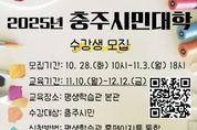 [비건뉴스=최지영 수습기자] 충주시가 지역대학과 협력해 추진하는 ‘2025년 충주시민대학’의 수강생을 모집한다고 밝혔다. 모집 기간은 오는 10월 28윌 오전 10시부터 11월 3일 오후 6시까지며, 충주 시민 누구나 참여할 수 있다. 충주시민대학은 관내 대학의 우수 교수진을 강사로 초청해 시민에게 수준 높은 평생학습 기회를 제공하는 대표적인 시민참여형 교육 프로그램이다. 올해는 시민의 학습 수요를 반영해 소통·문화·예술·법률 등 4개 교양과정으로 운영된다. 건국대학교 강석화 교수가 다양한 검사를 통해 자신과 타인의 성향을 이해하는 소통법을 다루고, 문선아 교수는 ‘영화음악의 이해’를 통해 영화와 음악이 어우러지는 문화예술 감성을 전달한다. 한국교통대학교 장효민 교수가 세계 문화도시 디자인 사례를 통해 각국의 예술과 디자인을 탐구하며, 이기욱 교수는 일상 생활 속에서 꼭 알아두어야 할 법률 지식을 쉽고 실용적으로 전달할 예정이다. 교육은 11월 10일부터 12월 12일까지 평생학습관 본관에서 진행되며, 과정별 정원은 20명이다. 충주시민대학은 매년 지역대학 교수