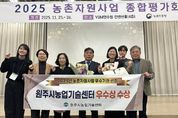 [비건뉴스=최지영 수습기자] 원주시농업기술센터는 지난 25일 열린 농촌진흥청 주관 ‘2025년 농촌자원사업 성과확산 경진대회’에서 우수상을 수상했다. 이번 대회는 농업·농촌 기술 보급을 통한 농가 소득 향상과 상품 개발 등 농촌자원 분야 우수사례를 발굴하기 위해 전국의 농촌진흥기관을 대상으로 진행됐다. 원주시농업기술센터는 2026년 치유농업센터 구축 공모 선정, 지역 자원을 활용한 시범 사업 추진, 농산물 가공 분야 기반 확대 등 다양한 성과를 인정받아 의미 있는 결과를 거뒀다. 이상분 농업기술센터 소장은 “이번 수상을 계기로 농업·농촌 현장에 필요한 사업을 적극 발굴하고 보급해 농가소득 향상에 최선을 다하겠다”라고 말했다.