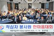 [비건뉴스=최지영 수습기자] 대한적십자사봉사회 정선군협의회는 11월 14일 정선농협 한우타운에서 봉사단원 간 화합과 봉사원으로서의 자긍심을 높이기 위한 ‘2025년 적십자봉사원 한마음대회’를 개최했다고 밝혔다. 이번 대회는 대한적십자사봉사회 정선군협의회가 주관했으며, 최승준 정선군수를 비롯해 대한적십자사봉사회 정선군협의회원과 유관 기관·단체장 등 250여 명이 참석했다. 행사는 내빈 소개와 정선군수 축사를 시작으로, 2025년 한 해 회원들의 봉사활동 영상을 공유하고 우수회원에 대한 포상과 기념식, 성희롱 예방 인형극 관람, 화합 프로그램 등 다양한 순서로 진행됐다. 최미숙 대한적십자사봉사회 정선군협의회장은 “재난·재해 발생 시 현장에서 구호활동을 펼치며 지역사회의 재난 안전망 역할을 수행하고, 도움이 필요한 이웃을 위해 헌신하는 봉사원들에게 깊이 감사드린다”며 “이번 한마음대회가 나눔의 길을 함께하는 봉사원들이 서로 응원하고 화합하는 뜻깊은 시간이 되길 바란다”고 말했다.