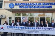 [비건뉴스=최지영 수습기자] 전라남도교육청이 10월 27일부터 11월 1일까지 4박 6일간 우즈베키스탄과 카자흐스탄을 방문해 중앙아시아와의 국제 교육협력 강화 방안을 모색했다. 김대중 교육감을 비롯한 전남교육청 방문단은 이 기간 ‘글로컬 인재 양성과 국제교육 네트워크 구축’을 목표로 우즈베키스탄 페르가나주 교육청을 비롯한 학교, 고려인 협회 등을 공식 방문했다. 10월 28일에는 우즈베키스탄 페르가나주교육청과 교육협력 로드맵을 체결했다. 이번 협약을 통해 두 기관은 정례 협의회 운영, 학교·학생·교사 간 교류 확대, 한국어 교육 내실화, 유학생 유치 협력 등 실질적 협력 방안을 마련했으며, 상호 신뢰를 바탕으로 한 지속 가능한 교육교류의 토대를 구축했다. 특히, 별도의 면담에서는 2026년 개교 예정인 전남교육청의 전남미래국제고등학교의 외국인 유학생 교육 프로그램과 한국어·직업교육 과정이 소개됐으며, 페르가나주 내 학생들의 유학 참여를 확대하기 위한 협력 방안이 논의됐다. 김대중 교육감은 “전남미래국제고는 한국의 직업교육과 한국어교육을 결합해 세계 각국 학생이 함께 배우는 국제형 학교”라며, “페르가나 지역의