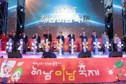 [비건뉴스=최지영 수습기자] 해남의 가을이 맛과 멋으로 물들었다. 해남의 농수특산물과 먹거리가 한자리에 모이는 해남미남(味南)축제가 10월의 마지막날을 화려하게 수놓으며 막을 올렸다. 전국에서 찾아온 관광객들이 두륜산 도립공원 일원을 가득 메운 가운데 10월 31일에는 해남 14개 주민들이 참여한 읍면별 특산물 뽐내기 퍼레이드와 해남8미(八味) 선포 퍼포먼스 등으로 구성된 개막식이 열렸다. 해남 옥천면의 쌀, 송지면의 김, 문내·화원면의 배추, 산이면의 고구마 등 주산지의 특산물을 앞세운 각 읍면별 개성있는 퍼포먼스가 관람객들의 환호를 자아냈고, 홀로그램을 이용한 해남8미 선포식에서는 해남의 진미로 선정된 음식들의 특징과 유래에 대해 다시한번 알리는 시간이 됐다. 축제에서는 해남에 대한 애정을 가득 담아 고향사랑기부금과 장학사업기금 기탁도 이뤄졌다. 김영태 전 재광화산향우회장이 고향사랑기부금 500만원, 진경영 재목해남향우회장이 777만원, 해남농협과 진도농협에서 상호기부를 통해 500만원을 기탁했다. 4년째 장학사업기금을 기탁하고 있는 해남군산림조합에서 올해도 1,000만원의 장학사업