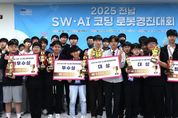 [비건뉴스=최지영 수습기자] 전라남도는 청소년의 창의적 문제해결력과 인공지능 융합 역량을 한층 강화하는 위한 2025 전남 SW·AI 코딩 로봇경진대회를 지난 10월 31일까지 이틀간 나주 동신대학교에서 개최했다고 밝혔다. ‘도시의 문제를 해결하는 스마트 로봇’을 주제로 열린 이번 대회는 전남도, 전남도교육청, 나주시가 공동으로 주최하고 (재)전남정보문화산업진흥원이 주관했다. 전남 초·중·고등학생 30개 팀(90명)이 2인 1조로 참가해 일상에서 발견한 문제 해결을 위한 아이디어를 바탕으로 로봇 코딩 실력을 겨뤘다. 평가는 팀별 아이디어 과제 발표, 직접 제작한 로봇 경기로 진행됐다. 경진대회는 교구재를 사전 배부하고 교육해 경험이 부족한 학생들도 쉽고 즐겁게 참여할 수 있도록 하고, 소속 학교 지도교사의 피드백을 통해 로봇과 코딩에 대한 이해도를 높였다. 초등, 중등, 고등 부문별로 각각 대상 1팀, 최우수상 1팀, 우수상 1팀을 선정, (재)전남정보문화산업진흥원장상과 상금이 수여됐다. 대상은 ▲초등부 여수 여도초등학교(Y.E.S.1) ▲중등부 나주 영산중학교(평가문제집) ▲고등부 순