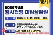 [비건뉴스=최지영 수습기자] 서울 강동구는 오는 12월 13일, 수험생들의 효율적인 정시 지원 전략 수립을 돕기 위한 ‘2026학년도 정시전형 대입상담실’을 운영한다고 13일 밝혔다. 이번 대입상담실은 정시 지원을 앞둔 수험생과 학부모를 대상으로, 2026학년도 대입 정시전형 관련 궁금증을 해소하고 개인별 맞춤형 대학·전공 지원 전략 수립을 지원하기 위해 마련됐다. 상담은 수능성적 통지 직후 주말인 12월 13일에 강동구 미래교육혁신센터에서 진행되며, 총 18개 상담 부스를 운영해 회당 40분간 심층 상담이 이뤄질 예정이다. 이를 통해 수험생과 학부모가 안정적으로 정시전형을 준비할 수 있도록 지원한다. 상담은 한국대학교육협의회 대입상담교사단 소속 교사들이 맡아 전문 대입 상담 프로그램을 활용, 정확하고 체계적인 상담 서비스를 제공한다. 참여 신청은 오는 11월 18일부터 통합교육포털 ‘강동 미래온’ 누리집(홈페이지)을 통해 온라인으로 할 수 있으며, 선착순으로 접수받는다. 이수희 강동구청장은 “시기별‧개인별 맞춤 상담을 통해 수험생과 학부모님들이 체계적으로 정시 지원 전략을 세울 수 있