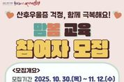 [비건뉴스=최지영 수습기자] 보령시 정신건강복지센터가 산후우울증 예방 및 관리를 위한 ‘맘봄 교육’ 참여자를 모집한다. 교육은 오는 11월 19일(수) 오후 2시에 보령 문화의 전당에서 진행된다. 이번 교육은 보령시에 거주하는 임신·출산 여성 및 그 가족을 대상으로 한다. 홍성의료원 정신건강의학과 전문의를 초청해 ▲산후우울증 교육의 필요성 및 인식 점검 ▲산후우울증 현황 및 실태 ▲산후우울증의 원인 및 증상 ▲예방 및 관리 방법 ▲가족의 역할 등 실생활에 도움이 되는 내용 중심으로 진행될 예정이다. 보건복지부의 '2024년 산후조리 실태조사'에 따르면, 실제로 산후우울증 진단을 받은 비율은 6.8%에 달한다. 산후 우울감 해소에 가장 큰 도움을 준 사람은 ‘배우자’(57.8%)였으나, 도움을 받지 못했다고 응답한 비율도 23.8%로 나타나 산후우울증에 대한 적극적인 관리와 지원이 필요한 것으로 나타났다. 보건소는 이번 교육을 통해 산모와 가족 간의 정서적 지지를 강화하고, 양육 스트레스 완화 및 정신건강 증진에 기여할 것으로 기대하고 있다. 전경희 보건소장은 “이번 교육이 산전·후 우울에 대한 올바
