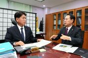 [비건뉴스=최지영 수습기자] 충북 괴산군은 13일, 송인헌 군수가 국회를 방문해 지역 현안사업의 정부 예산 반영을 위해 국회의원들과 면담하고 예산안 심의에 적극 협조를 요청했다고 밝혔다. 송 군수는 이날 한병도 예결위원장을 비롯하여 이재관·박형수 국회의원을 만나 괴산의 미래 성장 기반 마련과 군민 삶의 질 향상을 위한 핵심 사업 6건을 설명하며, 국비 차원의 예산 증액 협조를 적극 요청했다. 군이 건의한 주요 사업은 △괴산육군학생군사학교 체력단련장 조성사업(총사업비 300억 원), △불정목도지구 도시침수예방사업(266.4억 원), △괴산군 자원순환센터 매립시설 3단계 1단 증설사업(25.3억 원), △주진N2지구 급경사지 붕괴위험지역 정비사업(6억 원) △광진지구 농촌용수개발사업(113억 원) △산촌활성화지원센터 관리(50억 원) 등이다. 해당 사업들은 기존 시설의 노후화와 지역 환경 변화에 대응해 군민의 삶의 터전을 안정적으로 마련하는 핵심 사업이다. 특히 괴산육군학생군사학교 체력단련장 조성사업은 학군교 유휴부지를 활용해 군 장병 복지 증진과 함께 지역 체육 인프라를 확충하고, 경제 활성화에도 기