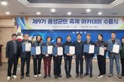 [비건뉴스=최지영 수습기자] 음성군은 13일 군청 상황실에서 제9기 음성군민 축제 아카데미 수료식을 개최했다고 밝혔다. 군민 축제 아카데미는 주민 주도형 축제를 위해 상반기 특별강좌교육과 하반기 정기강좌교육으로 나눠 운영됐다. 상반기 특별강좌교육은 지난 3월 한 달간 제26회 음성품바축제 ‘음성N품바 경연대회’ 참가자를 위해 자문과 지도 강의로 이뤄졌다. 또 하반기 정기강좌교육으로 지난 9월부터 10월까지 매주 월요일마다 축제 이론과 발전 방안 교육을 5회 진행했으며, 교육 기간 중 이천쌀문화축제 벤치마킹을 다녀왔다. 그동안 진행된 아카데미 주요 내용은 △축제의 본질 및 축제 정책의 이해 △음성군 축제의 지속가능 발전 및 지향 △설성문화제 활성화 방안 등이다. 특히 축제 전문가 강의와 다양한 아이디어 도출을 위한 교육 등 축제 실무와 축제의 지속 가능한 발전 및 자생적으로 지역 주민의 축제 참여율을 높이는 내용을 강화했다. 조병옥 군수는 “이번 아카데미를 통해 군민의 지역축제 관심을 유발하고 적극적인 참여를 확대하는 계기가 됐다”며 “내년에도 축제 아카데미를 운영함으로써 군