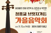 [비건뉴스=최지영 수습기자] 충북도는 제천시, 충북문화재단과 함께 오는 15일 오후 2시 제천 청풍교에서 ‘가을맞이 작은음악회’를 연다. 이번 음악회는 청풍호의 탁 트인 호수 풍광과 울긋불긋한 단풍이 어우러진 청풍교를 무대로, 도민과 관광객이 가을의 정취를 음악으로 만끽할 수 있도록 마련된다. 또한 청풍교 정원화 사업의 의미와 향후 조성 계획을 널리 알리기 위한 취지로 열리게 된다. 공연은 세계적인 바이올리니스트 유진박의 감동적인 클래식 연주를 시작으로, 소프라노 박진현, 피아니스트 김진권 등 다양한 장르의 지역 예술가들이 무대에 오를 예정이다. 특히, 청풍호반의 자연을 배경으로 펼쳐질 무대는 ‘자연 속 예술정원’처럼 한 폭의 풍경화를 연상케 할 것으로 기대를 모으고 있다. 정선미 충북도 문화체육관광국장은 “앞으로도 호수 위 정원으로 새롭게 태어날 청풍교를 널리 알리고, 도민과 관광객이 함께 즐길 수 있는 다양한 문화 프로그램을 지속적으로 추진하겠다”고 말했다. 한편, 충북도는 청풍교에 ‘청풍명월’의 의미와 형상을 담은 조경과 조형물을 배치하는 ‘브리지 가든’ 조성 사업