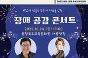 [비건뉴스=최지영 수습기자] 충청북도교육청 직속기관 특수교육원은 24일 저녁, 장애와 비장애의 경계를 넘어 서로의 마음을 잇는 특별한 무대인 '모두의 마음을 잇는 장애 공감 콘서트'를 교육문화원에서 가졌다. 공연에는 학생, 학부모, 교직원, 도민 950여 명이 함께하며 장애인과 비장애인이 음악으로 소통하는 뜻깊은 시간을 나눴다. 이번 콘서트는 장애 인식 개선과 문화예술을 통한 사회적 공감 확산을 위해 마련된 무료 기획 공연이다. 우리나라 최초의 청각장애인 아이돌 그룹인 빅오션, 폭발적인 고음과 감성 보컬로 섬세한 표현력까지 겸비한 HYNN(박혜원), 소찬휘, 권인하 등의 가수가 출연해 다채로운 무대를 선보였다. 최명옥 특수교육원장은 “장애에 대한 사회적 인식 개선을 위해 앞으로도 특수교육원이 다양한 공연 및 행사로 장애 공감 문화 확산을 위한 중추적인 역할을 담당하겠다.”라고 밝혔다. 윤건영 교육감은 “이번 콘서트는 단순한 공연이 아니라, 서로의 다름을 이해하고 함께 어우러질 수 있는 사회를 만들어가는 작은 발걸음이다.”라며, “앞으로도 모두의 마음을 잇는 문화예술 프로그램을 지속적으로