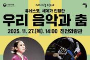 [비건뉴스=최지영 수습기자] 충북 진천군은 오는 27일 오후 2시, 진천 화랑관에서 국립국악원의 순회공연 ‘국악을 국민 속으로’를 개최한다고 밝혔다. 이번 공연은 대한민국을 대표하는 전통 예술기관인 국립국악원이 주관하는 ‘2025 국악을 국민 속으로’ 공모사업에 진천군이 선정되면서 마련됐다. 해당 공연은 흥겨운 판소리와 민요, 아리랑 등 한국 고유의 정서를 담은 다채로운 프로그램으로 구성돼, 남녀노소 누구나 즐길 수 있는 국악 공연이다. 특히, 서울에서만 만나볼 수 있던 수준 높은 공연을 진천군민이 가까이에서 감상할 수 있는 뜻깊은 시간이 될 예정이다. 김현지 군 문화관광과 주무관은 “이번 공연을 통해 군민들이 우리 전통음악의 아름다움을 만끽하길 기대한다”며 “앞으로도 다양한 장르의 공연을 유치해 군민들의 문화 향유 기회를 확대해 나가겠다”고 말했다.