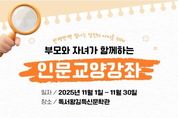 [비건뉴스=최지영 수습기자] 충북 증평군이 내달부터 독서왕김득신문학관 2층 문예배움실에서 ‘부모와 자녀가 함께하는 인문교양강좌’를 연다. 이번 강좌는 11월 한 달간 매주 토요일 오후 2시, 총 5회에 걸쳐 진행되며, 세대가 함께 공감하고 배움의 즐거움을 나눌 수 있는 다채로운 강의로 구성됐다. 이번 프로그램은 조선 후기 문인 백곡 김득신 선생의 삶과 정신을 바탕으로, 가족이 함께 인문학을 즐기고 교감할 수 있도록 기획됐다. 첫 강연에서는 드라마 ‘오징어 게임’ 등에 출연한 김윤태 배우가 강사로 나서 드라마·영화 촬영장의 뒷이야기와 함께 감정과 표정 연기를 직접 따라 해보는 체험 시간을 마련한다. 두 번째 시간에는 신대희 변호사가 판사와 변호사로 근무하며 겪었던 다양한 사례를 소개하고, 어린이도 이해하기 쉬운 재판 이야기를 들려준다. 참가자들이 역할을 나눠 모의재판을 체험할 기회도 제공한다. 이어 강신욱 기자가 조선 후기 대기만성의 상징인 김득신 선생의 생애와 독서 정신을 소개하며, 기자로서 취재한 지역 역사 자료와 경험을 생생하게 전달한다. 변광섭 문화산업재단