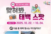 [비건뉴스=최지영 수습기자] 태백시는 10월 22일부터 24일까지 3일간, SNS 인스타그램을 활용한 ‘태백 명소 퀴즈 이벤트’를 진행 중이라고 밝혔다. 이번 이벤트는 태백의 아름다운 명소를 널리 알리고, 시민과 관광객에게 태백을 더 가깝게 느낄 수 있는 기회를 제공하기 위해 마련됐다. 행사는 태백시 공식 인스타그램을 통해 진행되며, 참여자 중 추첨을 통해 1만 원권 모바일 교환권을 증정한다. 특히 정답 여부와 관계없이 참여자 전원을 대상으로 추첨이 진행돼 누구나 쉽게 참여할 수 있다. 참여 방법은 태백시 인스타그램 계정을 팔로우한 후 게시물을 참고해 네이버폼 설문에 답변을 제출하면 된다. 이벤트는 10월 24일까지 진행되며, 당첨자는 10월 28일 태백시 공식 인스타그램을 통해 발표될 예정이다. 태백시 관계자는 “이번 SNS 이벤트가 많은 분들에게 태백의 매력을 알리고, 직접 방문하는 계기가 되길 바란다”며 “앞으로도 다양한 온라인 홍보를 통해 시민과 관광객이 함께 즐길 수 있는 참여형 콘텐츠를 지속적으로 확대하겠다”고 말했다.