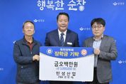 [비건뉴스=최지영 수습기자] 지역 인재육성의 산실인 (재)순창군 옥천장학회에 장학금 행렬이 이어지고 있다. 순창군은 14일 (유)만성사업이 옥천장학회에 지역인재 육성에 써달라며 장학금 500만원을 기탁했다고 밝혔다. 만성산업은 순창군 동계면에 위치한 골재 생산업체로, 평소에도 지역사회 발전에 깊은 관심을 가져왔으며, 2023년과 2024년에 이어 올해까지 3년 연속 장학금을 기탁하며 꾸준한 지역사랑을 실천하고 있다. 만성산업 전인석 대표는 “순창의 지역 인재들이 훌륭하게 성장하는 데 작은 보탬을 줄 수 있어 기쁘다”며 “순창군의 학생들이 꿈을 가지고 훌륭한 인재로 나아가는 밑거름으로 사용해달라”고 소감을 전했다. 최영일 순창군수는 “학생들을 위해 귀중한 장학금을 기탁해 주셔서 진심으로 감사드리며, 뜻에 맞게 지역인재를 위해 소중하게 쓰일 수 있도록 하겠다”고 밝혔다.