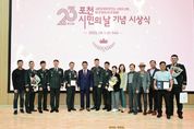 [비건뉴스=최지영 수습기자] 포천시는 지난 1일 시청 대회의실에서 제23회 포천시민의 날을 기념해 2025년 한 해 동안 지역 발전에 기여한 유공자들을 대상으로 표창 수여식을 개최했다. 이날 행사에는 백영현 시장을 비롯해 임종훈 포천시의회 의장, 김용태 국회의원을 대신한 김길주 사무국장과 수상자 등 100여 명이 참석해 자리를 빛냈다. 올해 표창은 △경기도지사 표창 8명 △포천시장 표창 65명 △포천시의회 의장 표창 14명 △국회의원 표창 14명 등 총 101명에게 수여했다. 수상자들은 지역사회 봉사, 문화·체육 진흥, 농업 발전, 지역경제 활성화 등 다양한 분야에서 묵묵히 헌신한 공로를 인정받았다. 백영현 포천시장은 “포천의 오늘을 있게 한 주인공은 바로 시민 여러분”이라며, “각자의 자리에서 보여주신 헌신 덕분에 포천이 함께 성장하는 희망의 도시로 나아갈 수 있었다. 앞으로도 모두가 행복한 도시를 만들기 위해 최선을 다하겠다”고 말했다. 한편, 제23회 포천시민의 날 기념 행사는 10월 12일 포천종합운동장에서 열릴 예정이다.