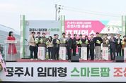 [비건뉴스=최지영 수습기자] 공주시는 지난 6일 ‘공주시 임대형 스마트팜 조성사업’ 준공식을 갖고 지역 농업의 경쟁력 강화와 지속가능한 미래 농업 실현을 위한 새로운 출발을 알렸다. 이번 준공식은 스마트 농업 기술을 통한 혁신적 영농 환경 조성과 청년 농업인 육성을 목표로 추진된 사업의 결실을 함께 나누기 위해 마련됐다. 행사에는 최원철 시장을 비롯해 김태흠 충남도지사, 시·도의원, 지역 농협조합장, 농업인 단체장 등 300여 명이 참석해 자리를 빛냈다. 참석자들은 준공을 축하하며 새싹 퍼포먼스와 테이프 커팅, 시설물 순회 등을 함께하며 공주시 스마트농업의 비전을 공유했다. 공주시 임대형 스마트팜 조성사업은 2022년부터 총사업비 150억 원을 투입해 이인면 주봉리 일원 3.4ha 부지에 동별 약 2,000㎡ 규모의 스마트 온실 10동과 관리동, 오수처리시설 등을 조성한 대형 프로젝트다. 이 시설은 첨단 ICT 기반의 온실 환경제어 시스템을 갖추고 있어, 재배 경험이 부족한 청년 농업인들도 안정적인 영농활동을 할 수 있도록 지원한다. 시는 이를 통해 청년층의 영농 진입 장벽