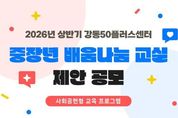 [비건뉴스=최지영 수습기자] 서울 강동구는 중장년 세대가 배움을 통해 지역과 소통하고, 경험을 지역 발전에 활용할 수 있도록 2026년 상반기 강동50플러스센터 ‘중장년 배움나눔 교실’ 제안 공모를 실시한다고 11일 밝혔다. 이번 공모는 단순한 취미나 자기 계발 차원의 교육을 넘어, 배움이 사회공헌 활동으로 연계될 수 있는 프로그램을 발굴하는 데 목적이 있다. 올해 시범운영에서는 ‘책놀이지도사 양성’, ‘통증 잡는 시니어 스트레칭 전문가 양성’ 등 8개 프로그램을 진행했으며, 수료생들이 커뮤니티를 구성해 봉사활동 등 다양한 지역 활동을 이어가는 의미 있는 성과를 거두었다. 공모에는 중장년층의 사회참여를 촉진할 수 있는 강의 콘텐츠를 보유한 강사라면 누구나 참여할 수 있으며, 신청 기간은 11월 17일까지이다. 전시·공연·체험 등 실습 중심의 프로그램은 물론, 수강 이후에도 참여자들이 스스로 모임을 이어가며 배움을 나눌 수 있는 창의적인 강좌 아이디어를 폭넓게 접수한다. 제안된 프로그램은 서면 심사와 대면 심사를 거쳐 최종 선정되며, 선정된 프로그램은 2026년 1월부터 3월까지 운영될 예정이다. 선