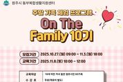 [비건뉴스=최지영 수습기자] 원주시 동부복합생활지원센터는 오는 11월 8일 주말 가족 프로그램 ‘온 더 패밀리(On The Family)’ 10기 과정을 운영한다. 센터는 가족이 서로의 소중함을 느끼고 소통하는 시간을 가질 수 있도록 부모와 자녀가 함께하는 교육과 따로 하는 교육으로 나눠 다양하고 풍성한 가족 프로그램을 운영하고 있다. 이번 10기 프로그램은 ▲자녀와 함께하는 즐거운 제과제빵 ▲아빠와 만드는 맛있는 요리교실 ▲아이와 신나는 홈패션 소품 만들기 ▲알콩달콤 빼빼로 과자집 아이싱쿠키 꾸미기 ▲엄마와 딸이 함께하는 퍼스널컬러 클래스 ▲나도 방송 스타! 방송댄스 교실(자녀) ▲자녀와 소통을 위한 부모 심리학(부모) 등 총 7개 강좌로 진행된다. 18세 이하 자녀를 동반한 원주시민은 누구나 무료로 강의를 들을 수 있으며, 재료비는 본인 부담이다. 참여 신청은 10월 27일부터 11월 3일까지 원주시 통합예약플랫폼에서 선착순으로 접수한다.
