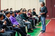 [비건뉴스=최지영 수습기자] 박강수 마포구청장은 11월 19일 오후 3시 10분, 용강동복합청사 4층 강당에서 열린 ‘창문을 열어라’ 용강노인복지관 나눔 행사에 참석해 지역 어르신들과 따뜻한 시간을 가졌다. 이날 행사는 독거 및 저소득 어르신 등 100여 명을 모시고 진행된 자리로, 초청공연과 축사, 나눔 프로그램 등이 이어지며 연말을 앞두고 어르신들에게 즐거움과 위로를 전하는 취지로 마련됐다. 행사는 청춘악단 공연을 시작으로 아동·청소년 댄스동아리 무대, 배우 이정용의 축하공연 등 다채로운 프로그램이 펼쳐져 참석한 어르신들의 큰 호응을 받았다. 이어 무대에 오른 박강수 마포구청장은 “갑자기 찾아온 초겨울 날씨로 부쩍 추워졌는데, 이렇게 밝은 미소로 뵙게 되어 반갑고 감사하다”라며, “바쁜 생활 속에 마음의 여유를 갖기 쉽지 않은 요즘이지만, 지금 이 순간만큼은 어르신 모두 마음의 창문을 활짝 열고 이웃과 소통하는 뜻깊은 시간이 되었으면 좋겠다”라고 인사를 전했다. 축사가 끝난 후 참석자들은 핑거푸드 뷔페로 준비된 간단한 식사를 나누며 담소를 나눴고, 행사 말미에는 어르신들에게 ‘사랑키트’가 전달돼
