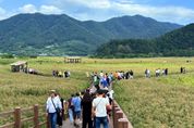 [비건뉴스=최지영 수습기자] 추석 연휴 순천만습지를 찾은 방문객들이 가을 정취 속에서 갈대밭 산책을 즐기고 있다.