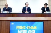 [비건뉴스=최지영 수습기자] 김영록 전라남도지사는 24일 도청 서재필에서 전남농협 조합장 등 13명과 간담회를 열어 농정 발전 협력 방안을 심도 있게 논의했다. 간담회에는 4선 이상 조합장들이 다수 참석해 지역별 농업 현안과 협력사업을 공유하고, 전남 농업의 경쟁력 강화와 농업인 경영안정을 위한 다양한 의견을 제시했다. 김영록 지사는 이 자리에서 “올 한 해 봄부터 가을까지 이어진 재해와 일부 농산물 가격 급등락 속에서 농민과 함께 애쓰고 고민하느라 수고 많았다”며 감사의 뜻을 전했다. 이어 “농협은 우리 농정의 핵심축”이라며 “탁월한 리더십으로 전남 농업의 미래를 여는데 큰 역할을 해줄 것”을 당부했다. 전남도와 전남농협은 생산비 절감, 농가 경영안정, 유통 활성화를 목표로 ▲원예작물 해충포획기 지원 ▲바이오차(토양환경개선제) 지원 ▲원예 분야 재해예방시설 지원 ▲농촌인력중개센터 운영 ▲농업재해보험사업 ▲친환경농산물 꾸러미 지원 ▲농촌 왕진버스 지원 등 총 18개 사업을 공동 추진했다. 올해 투입된 협력사업비는 2천755억 원에 달한다. 전남도는 앞으로도 농협과 협력 체계를 더욱 강화