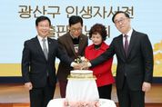 [비건뉴스=최지영 수습기자] “누구에게나 저마다 삶의 이야기가 있고, 그 이야기는 때로는 고통스럽기도 하고, 때로는 기쁨으로 가득 차기도 한다.” 배선주 시민 작가의 자서전 중 한 문구다. 광주 광산구(구청장 박병규)와 광주보건대학교(총장 김경태)가 공동으로 추진한 ‘광산구 인생자서전쓰기 사업’의 결실로, 광산 시민 14명의 삶의 이야기가 담긴 공동자서전이 출간됐다. 자서전 출간을 기념해 26일 광주보건대학교에서 출판기념회를 개최했다. 이날 행사는 △수료식 △자서전 쓰기 활동 기록 △작가 대표 소감 발표 등으로 진행했다. 자서전은 △개인의 기억과 성장 △지역사회와의 관계 △삶을 통해 얻은 가치와 배움 등의 각자의 글이 하나의 책으로 묶이며, 평범한 일상의 이야기가 모여 한 도시의 인문적 풍경을 그려냈다. 박병규 광산구청장은 “개인의 이야기를 넘어 각자의 삶을 통해 우리의 시대와 공동체가 담긴 한 권의 기록이 돼 사회 자산으로서의 가치를 지니게 됐다”라며 “인생자서전쓰기 사업이 광산구가 인문도시로 나아가는 발판이 되길 기대한다”라고 말했다.