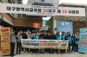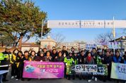 [비건뉴스=최지영 수습기자] 대구 서구 청소년지도협의회(회장 황만태)는 지난 12일, 서부고등학교 정문에서 학생들의 수능 예비 소집일 시간에 맞춰 수험생 응원 및 선도·보호 합동 캠페인을 실시했다. 이날 캠페인은‘조급해하지 마! 너 자신을 믿어!!’라는 슬로건 아래 서구청소년지도협의회(회장 황만태), 서구청소년상담복지센터(센터장 강진희), 서부경찰서 여성청소년과(과장 김선미)에서 30여 명이 참여한 가운데, 대입 수학능력시험을 앞둔 수험생들의 격려와 청소년 선도·보호를 위해 현수막, 피켓을 들고 학생들에게 자체 제작한 응원 물품을 나누어 주는 등의 활동으로 진행됐다. 서구 청소년지도협의회 회장은“힘든 수험 생활을 견뎌낸 학생들이 긴장하지 말고, 자신 있게 시험에 임한다면 그동안의 노력이 좋은 결과로 이어질 것을 믿는다. 앞으로도 청소년의 건강한 성장과 선도·보호를 위해 최선을 다하겠다.”라고 밝혔다.
