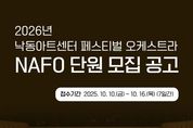[비건뉴스=최지영 수습기자] 부산 강서구는 서부산 최초의 클래식 전문 공연장인 낙동아트센터와 함께할 ‘낙동아트센터 페스티벌 오케스트라(NAFO)’ 단원을 공개 모집한다고 밝혔다. 이번 모집을 통해 강서구는 수준 높은 음악적 역량과 열정을 지닌 연주자들로 오케스트라를 구성해, 향후 낙동아트센터에서 품격 있는 클래식 공연을 시민들에게 선보일 계획이다. NAFO는 내년 1월 낙동아트센터 정식 개관 기념 무대에서 말러 교향곡 제8번, 오페라 아이다, 발레 백조의 호수 등 세계적인 명작을 연주할 예정이다. 이에 앞서 오는 12월 24일, 말러 교향곡 제8번과 베토벤 교향곡 제9번 4악장을 연주하는 프리뷰 콘서트를 개최해, 정식 개관 전부터 웅장한 음악의 울림을 선사하며 낙동아트센터에 대한 시민들의 기대감을 높일 전망이다. 모집 분야는 ▲오케스트라 악장 ▲수석 ▲단원 ▲기획지원단원이며, 만 18세 이상이면 누구나 지원 가능하다. 접수 기간은 10월 10일부터 16일 오후 5시까지로, 강서구청 홈페이지에서 참여신청서를 내려받아 전자메일로 제출하면 된다. 전형은 기획지원단원의 경우 면접, 오케스트라 단원의 경우