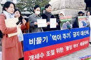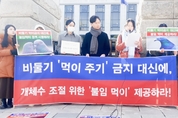 [비건뉴스=최유리 기자] 비둘기 먹이주기 금지 법과 조례가 헌법이 보장하는 기본권을 침해한다는 주장이 제기됐다. 동물단체들은 22일 오후 서울 종로구에 위치한 헌법재판소 정문 앞에서 기자회견을 열고, 「야생생물 보호 및 관리에 관한 법률」 개정 조항과 이를 근거로 한 지방자치단체 조례에 대해 헌법소원을 제출했다고 밝혔다. 이날 기자회견은 동물권단체 케어, 한국동물보호연합, 승리와평화의비둘기를위한시민모임이 공동 주최했다. 단체들은 성명서 낭독과 자유발언, 피켓팅을 진행한 뒤 헌법소원 서류를 접수했다. 문제가 된 조항은 야생생물법 제23조의3으로, 지방자치단체장이 조례로 정한 장소나 시기에 유해야생동물에 대한 먹이주기 행위를 금지하거나 제한할 수 있도록 규정하고 있다. 해당 법은 2024년 12월부터 시행됐으며, 이를 위반할 경우 과태료 부과도 가능하다. 이 조항을 근거로 각 지자체는 비둘기 등 도시 야생동물을 대상으로 먹이주기 금지 조례를 잇따라 제정·시행하고 있다. 동물단체들은 이러한 정책이 개체수 조절을 위한 합리적 관리가 아니라, 사실상 동물을 굶겨 죽이는 ‘아사 정책’에 불과하다고 주장했다. 한국동물보호연합 관계자는 먹이 공급을 차단한다고 해서 개체수가