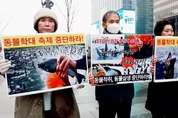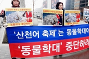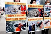 [비건뉴스=최유리 기자] 동물보호단체들이 16일 오후 서울 광화문 이순신동상 앞에서 산천어 축제 중단을 촉구하는 기자회견을 열었다. 한국동물보호연합, 동물에게자비를, 한국비건채식협회, 기후위기비건행동, 한국비건연대, 한국채식연합은 이날 기자회견에서 산천어 축제를 ‘동물학대·동물살생·동물착취 축제’로 규정하며, 동물을 오락과 유흥의 대상으로 소비하는 행위를 즉각 중단해야 한다고 주장했다. 참가자들은 피켓팅과 퍼포먼스를 통해 “동물은 오락용이 아니다”, “축제라는 이름의 동물학대를 멈춰야 한다”는 메시지를 전달하며, 수생동물 역시 고통을 느끼는 생명체라는 점을 강조했다.