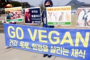 [비건뉴스=최유리 기자] 비건 시민단체들이 세계 비건의 날을 하루 앞두고 서울 광화문에서 기자회견을 열고, 건강과 지구, 동물을 살리는 비건 채식 실천을 촉구했다. 한국비건채식협회, 기후위기비건행동, 한국비건연대, 비건세상을위한시민모임, 한국채식연합 등 5개 시민단체는 10월 31일 오후 1시 서울 광화문 이순신동상 앞에서 ‘지구를 살리는 비건 채식 촉구’ 기자회견을 열었다. 이번 행사는 오는 11월 1일 ‘세계 비건의 날(World Vegan Day)’을 맞아 비건 채식의 의미와 필요성을 알리기 위해 마련됐다. 참석자들은 ‘비건 채식이 건강을 살린다’, ‘비건 채식이 동물을 살린다’, ‘비건 채식이 지구를 살린다’ 등의 구호를 외치며 피켓팅과 퍼포먼스를 진행했다. 이들은 비건 채식이 개인의 건강뿐 아니라 동물복지, 환경 보호 측면에서도 가장 효과적인 실천이라고 강조했다. 한국채식연합 관계자는 “육식은 고혈압, 심장병, 암, 당뇨 등 주요 질병의 원인으로 지목되고 있으며, 가공육은 세계보건기구 산하 국제암연구소(IARC)에 의해 1군 발암물질로 분류됐다”며 “비건 채식은 질병 예방뿐 아니라 생명 존중의 실천”이라고 밝혔다. 단체 측은 또한 매년 전 세계적으로