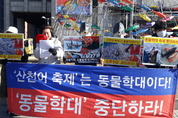 다음은 20일 서울 중구 한국프레스센터 앞에서 열린 ‘산천어 축제, 동물학대 축제 중단을 촉구하는 기자회견’에서 발표된 성명서 전문이다. ‘동물학대’ 축제를 중단하라. ‘동물살생’ 축제를 중단하라. ‘동물학살’ 축제를 중단하라. ‘동물착취’ 축제를 중단하라. ‘동물오락’ 축제를 중단하라. ‘동물학대’ 축제는 이제 그만. ‘동물살생’ 축제는 이제 그만. ‘동물학살’ 축제는 이제 그만. ‘동물착취’ 축제는 이제 그만. ‘동물오락’ 축제는 이제 그만. 동물은 오락용이 아니다. 동물은 유희용이 아니다. 동물은 장난감이 아니다. 동물은 물건이 아니다. 수생동물도 고통을 느낀다. 물살이도 고통을 느낀다. 매년 1월 강원도 화천에서는 산천어 축제가 열린다. 2026년 올해에도 1월 10일부터 2월 1일까지 23일간 진행되고 있다. 그러나 많은 사람들은 산천어 축제가 왜 문제인지 알지 못한다. 2026년 산천어 축제를 위해 전국 양식장에서 양식된 산천어가 화천군으로 운송됐으며, 그 수는 약 60만 마리에 이른다. 이는 전국 양식 산천어의 90% 이상을 차지하는 규모다. 운송 과정에서 산천어들은 과밀 환경과 산소 부족, 기온 저하 등으로 심각한 스트레스를 받으며 폐사하기도